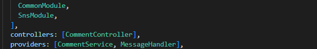 이번에도 comment의 module에 imports: [] 부분에 'SnsModule'이라고 작성하기만 하면 된다.