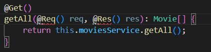 MoviesService를 보면 @Injectable()이라는 데코레이터가 있다. 이게 무엇인지는 깊게 얘기하지 않음