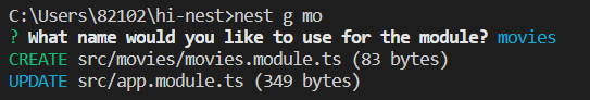 - Terminal(CLI)에서 npm g(enerate) mo(dule)을 통해 movies module을 생성해줌