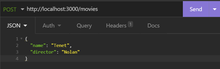 내 movie가 name, director의 body를 가진다. (insomnia에서 JSON으로 body 작성)